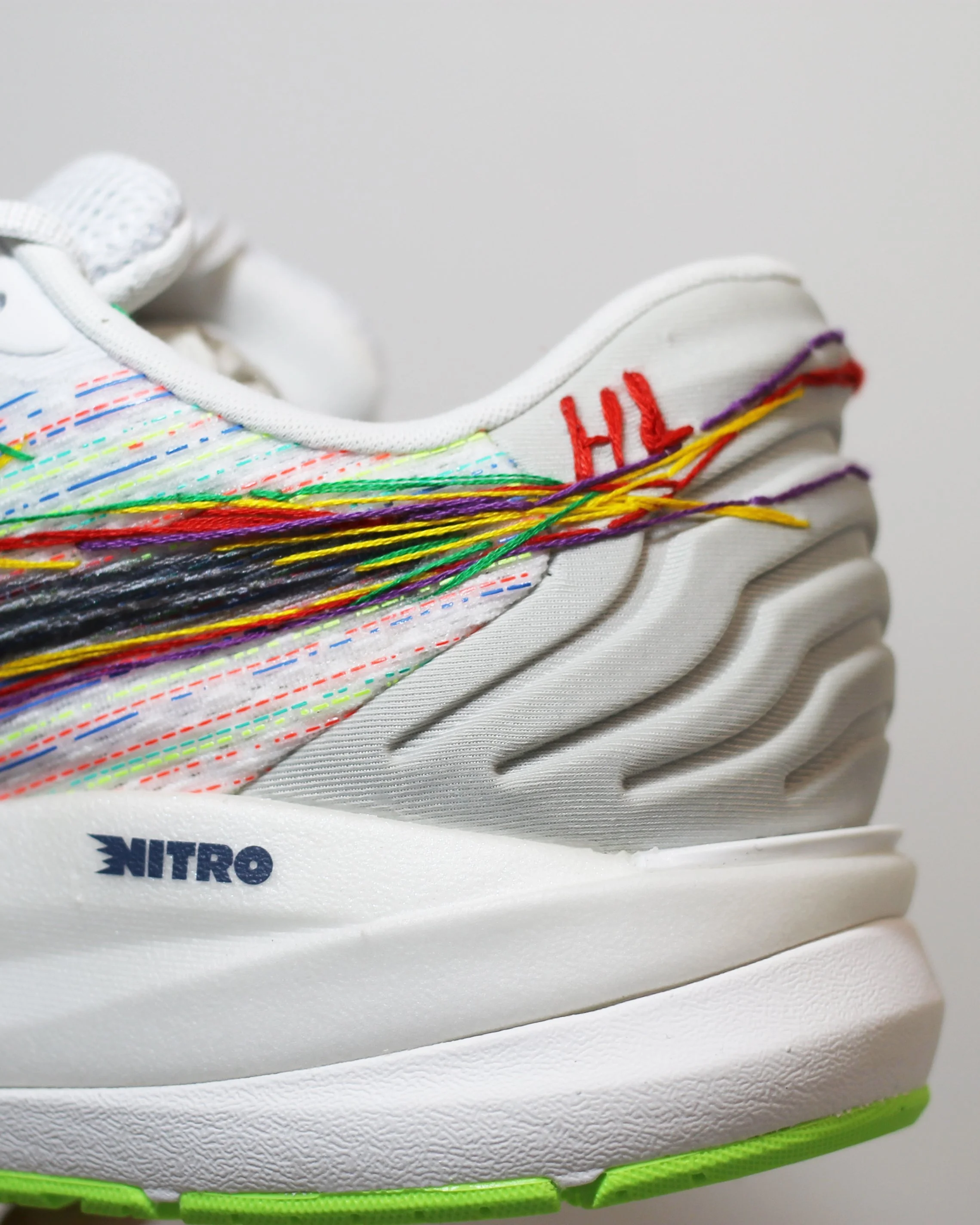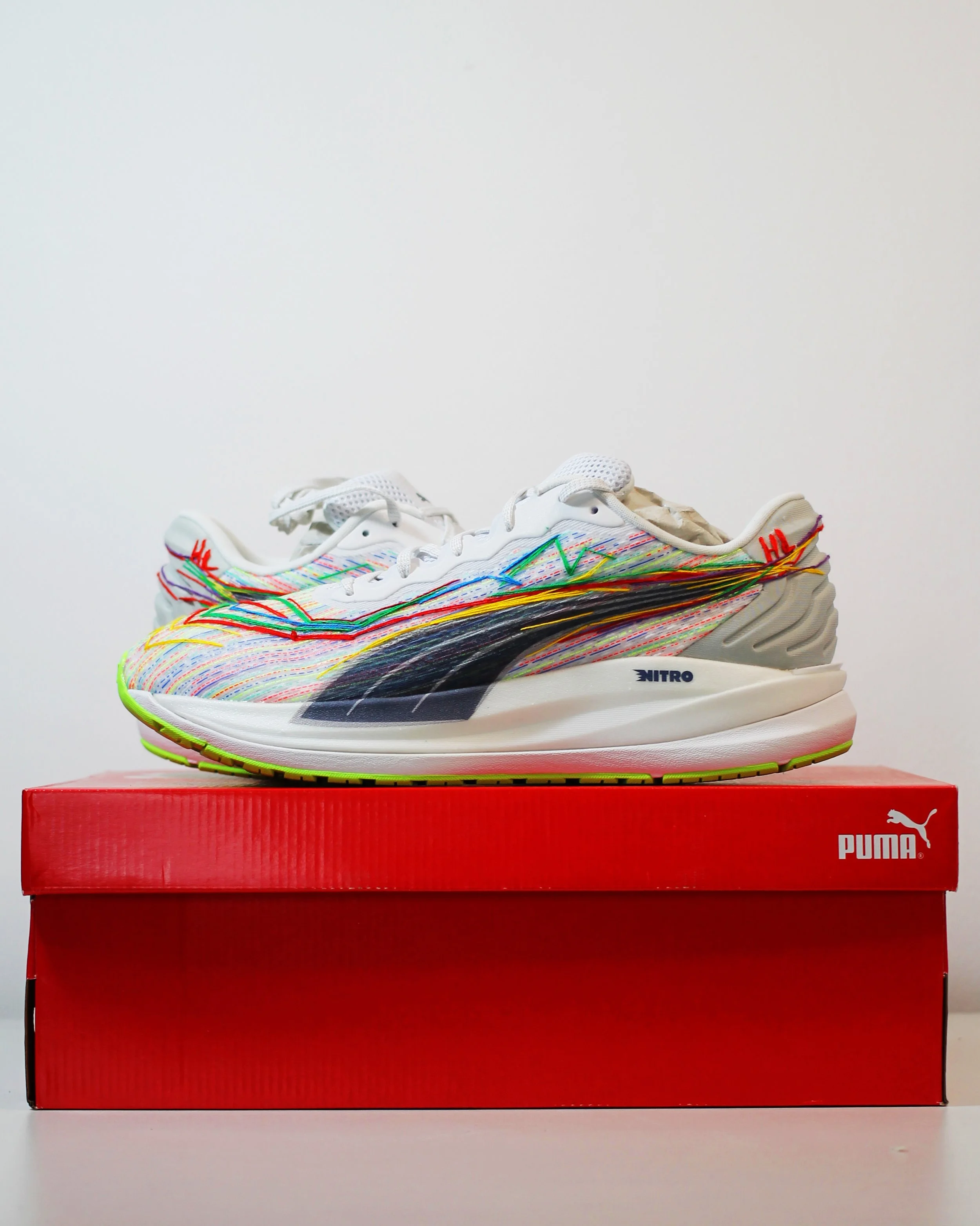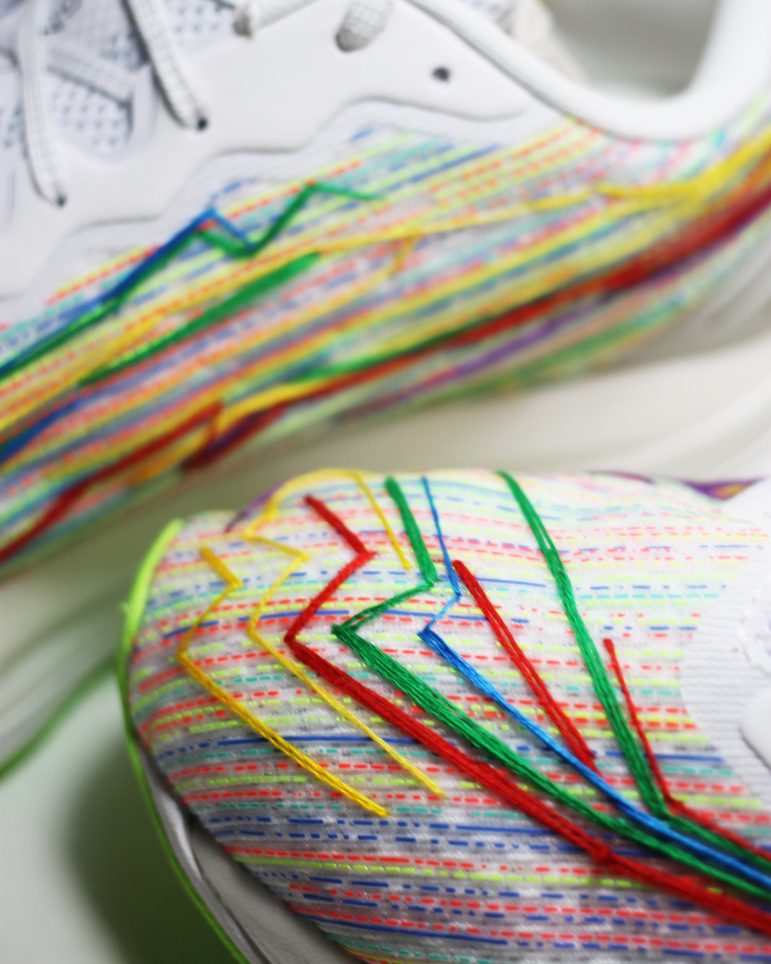 I was commissioned by 160over90 on behalf of Puma to create 10 bespoke trainers for running influencers. I hand stitched and designed each pair for these runners, including a special monogram for each giftee.